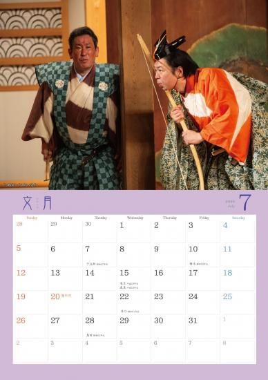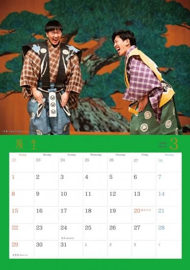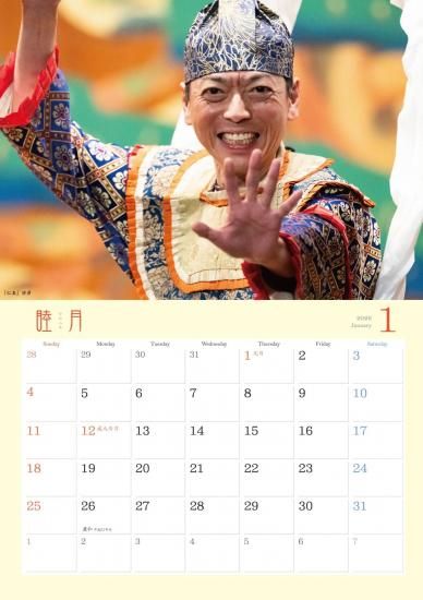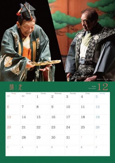 各月に千五郎家の各役者の舞台写真を掲載していて、お家で狂言会の雰囲気をお楽しみいただけます。